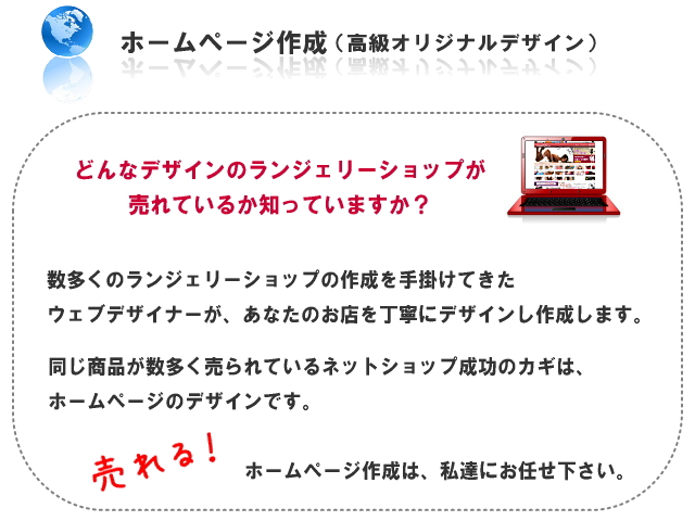 ご開業いただいた方々には、直営店ランジェリータの販売実績を元に、宣伝方法や運営に関する無料アドバイスを行っております。 |